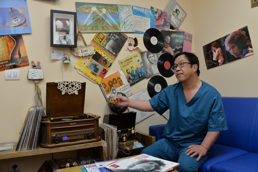 А теперь давайте про “похулиганить”. У председателя правления АО “Национальный научный кардиохирургический центр”, главного внештатного кардиохирурга Казахстана нет секретаря. Дверь в его кабинет всегда открыта. Многие думают, что на прием к такой звезде не попасть. Не так. Совершенно. В его кабинете есть своеобразная прихожая - место, где могут отдохнуть те, кто пришел к нему на прием и вынужден ждать. Его Пя обустраивал сам. На стенах - любимые пластинки: Высоцкий, Окуджава, “Машина времени”, британские рок-группы, картины, подаренные по случаю, и необычные сувениры. Здесь же - проигрыватель и телефон. Все работает. Хочешь - звони. Есть желание - слушай музыку. Пя в комнате по соседству будет только рад. Это и память о его студенческих временах, когда во время учебы в Московском мединституте им. Н. И. Пирогова он был диджеем, на дискотеках которого бывали и некоторые из тех, чьи пластинки теперь висят на стенах его кабинета.