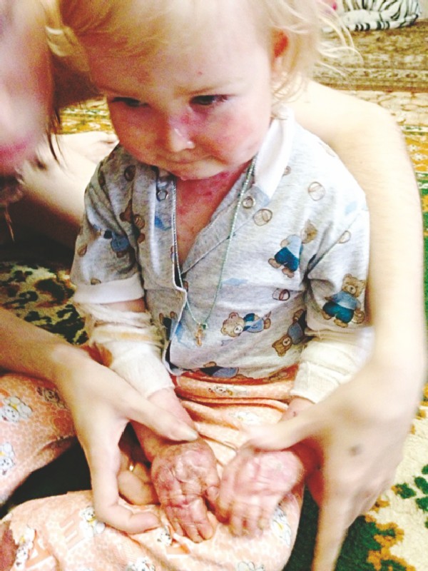 Малышке из Рудного Саше ИГНАТЕНКО (на снимке) уже два года. Ее редко берут на руки, потому что практически любое прикосновение сильно травмирует нежнейшую кожу ребенка. Поэтому Сашу и таких, как она, называют бабочками. Название их болезни менее благозвучно: буллёзный эпидермолиз. Он диагностируется у одного на миллион человек в мире.