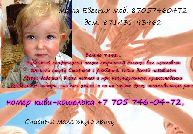 В мире всего две клиники, которые добились реальных успехов в оказании помощи “людям-бабочкам”. Эти медцентры расположены в Израиле и Германии. А в Казахстане не купить специальных лекарств и даже бинтов, которые нужно использовать для таких больных. Лицо и руки этого ребенка буквально кровоточат…