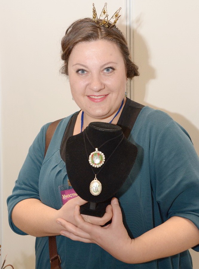 Особый интерес вызвало творчество нескольких дизайнеров. К примеру, Анастасия НИКИФОРОВА (на верхнем снимке) - единственный в стране художник-дизайнер, работающий в технике перегородчатой эмали. Мастер рассказала, что ювелирные украшения с эмалью не тускнеют с годами и им не страшны ни свет, ни перепады температуры воздуха.
