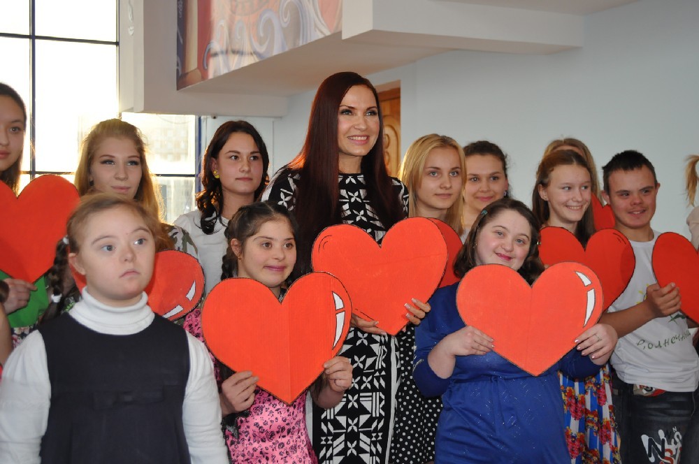 Теперь уже знаменитый набор знаков под песню “Не молчи” для Эвелины Бледанс петропавловские дети с синдромом Дауна исполняют вместе с обычными. Это те школьники, которые после уроков толерантности просили Татьяну познакомить их с солнечными людьми.