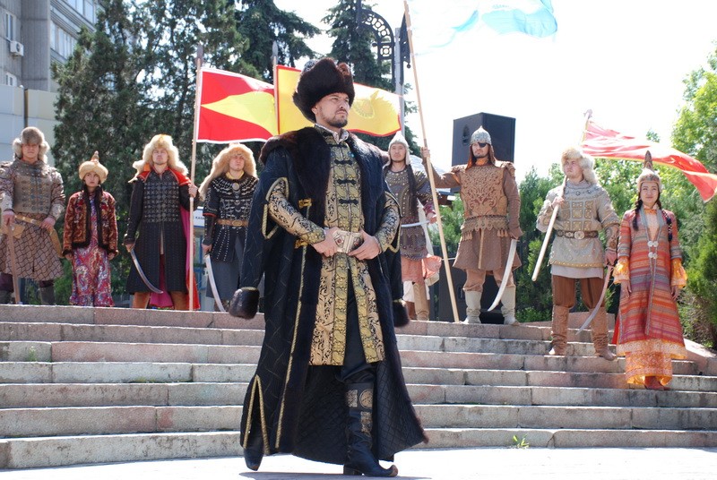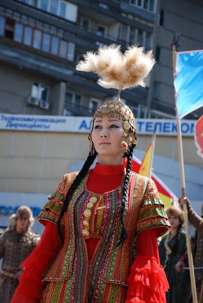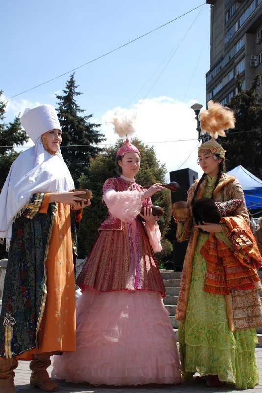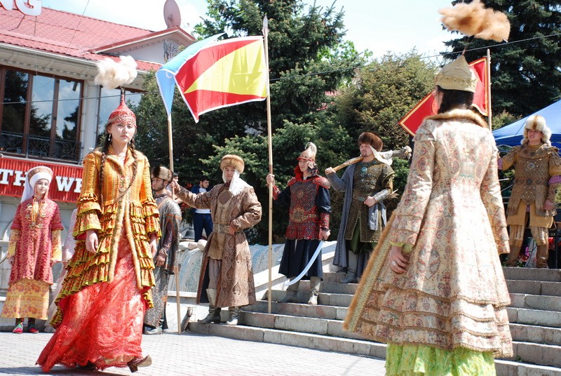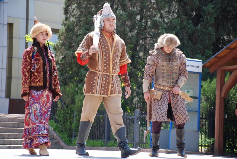 В театре “Арлан” есть большая коллекция исторических костюмов народов, населявших территорию современного Казахстана на протяжении 6000 лет. Некоторые из этих нарядов были представлены на фестивале и вызвали большой интерес у зрителей. Женская половина с восхищением смотрела на статных джигитов в кожаных доспехах и лисьих малахаях, а парни не могли оторвать глаз от прекрасных девушек в национальных платьях.