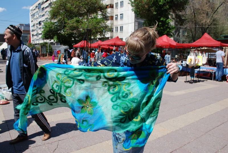 На два дня алматинский Арбат стал местом встречи ремесленников не только из Казахстана, но и из Узбекистана и Киргизии. Организаторы приготовили большую праздничную программу с участием танцевальных коллективов, певцов, дизайнеров. Особый интерес вызвали мини-спектакли “қыз ұзату” и “Беташар” театра национальных традиций “Арлан” под руководством Муслима ЖУМАГАЛИЕВА.