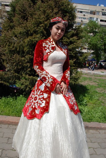 - В последнее время интерес к национальной одежде очень вырос, - говорит дизайнер Татьяна ИДРИСОВА. - Все чаще стали заказывать платья для “қыз ұзату” (проводы невесты), костюмы для тусау кесу (разрезание пут), а также просто национальную одежду для повседневной жизни. По образованию я художник театра и кино. Восемь лет проработала в Казахском государственном театре драмы им. М. Ауэзова, где создавала национальные костюмы для постановок. Но мне не нравилось, что в театре мы делали всегда одинаковый орнамент. Сейчас я использую три своих авторских орнамента: рогатый, цветочный и геометрический, и людям это очень нравится.