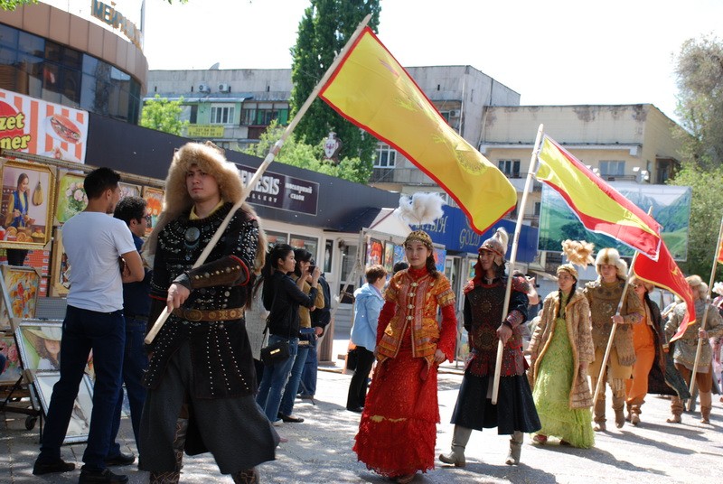 В минувшие выходные в Алматы прошел фестиваль казахской национальной одежды. Гвоздем праздника стало шествие в средневековых костюмах и дефиле в современных нарядах.