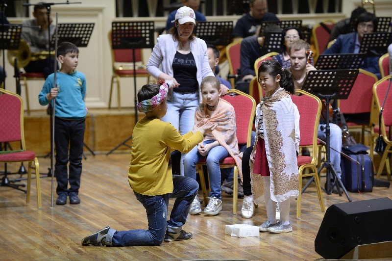 Мы побывали на одной из репетиций этой удивительной сказки. Пока на сцене разыгрывался оркестр, родители вместе с организаторами решали, получится ли сделать дополнительный спектакль. Билеты на премьеру, представьте себе, были раскуплены моментально! Тем временем актеры, как и положено детям, носились по залу, играя в догонялки. Четырнадцатилетняя Наина КАЛИСТРАТОВА “охотилась” за крохотной Амирой ЕСМАХАНОВОЙ, что вполне соответствовало сюжету истории о юной заколдованной принцессе.