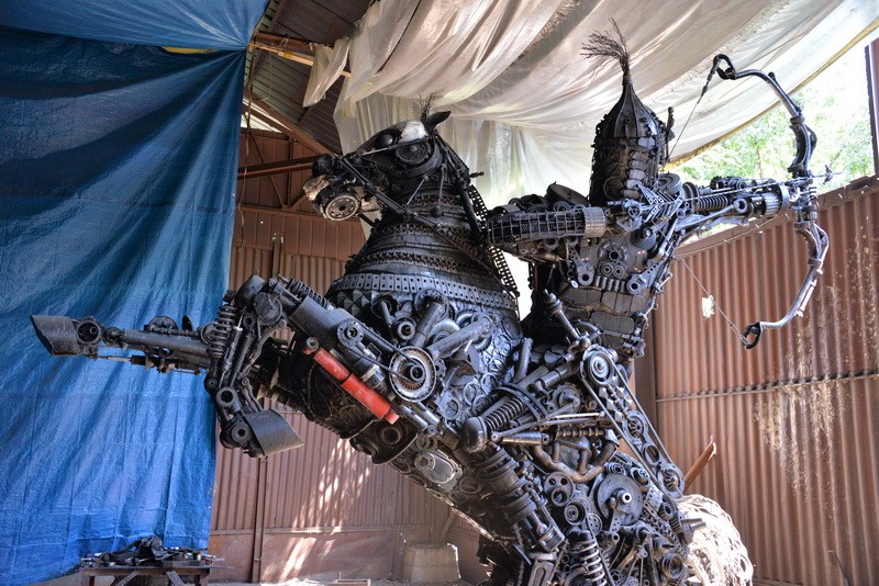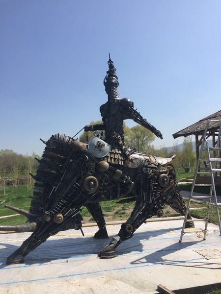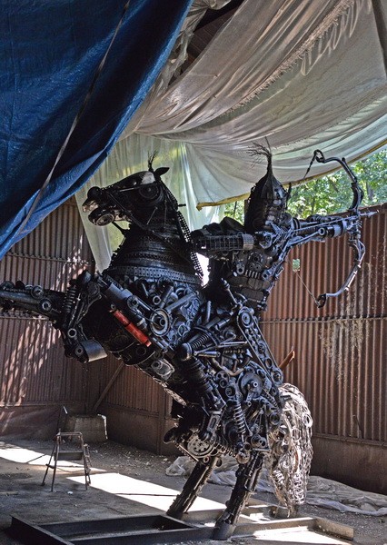 - Зуля, - скромно представляется он и приглашает нас в ангар. Открываются ворота - и перед нами возникает гигантская скульптура всадника.