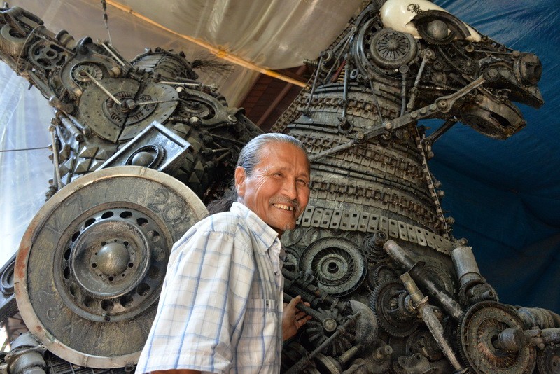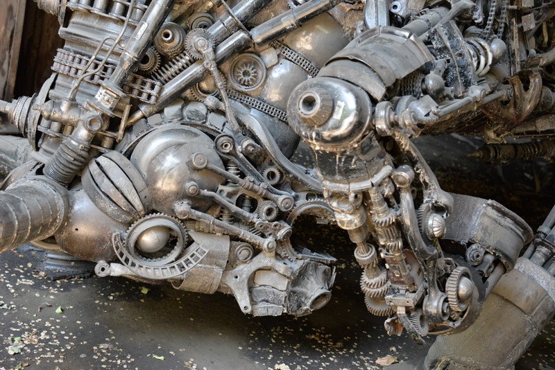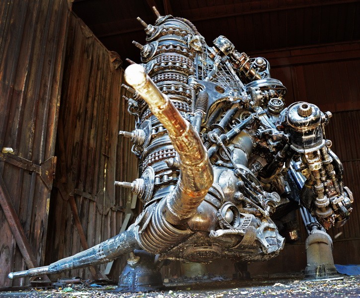 - Думаю, из этих деталей можно собрать в общей сложности пять машин, - продолжает художник. - Когда первую работу выставили, то многие подходили и спрашивали: она у вас двигается? Я отвечал: да мотор забыли поставить (смеется)! Есть задумка в будущем снабдить скульптуры мотором, чтобы они голову поворачивали, звуки издавали. В этом жанре работать непросто, - замечает уже более серьезно мастер. - Если обычную скульптуру, например из глины, можно переделать, то стимпанк ошибок не прощает. Каждая деталь должна сразу оказаться на своем месте, потому что ее приварили, и все.
