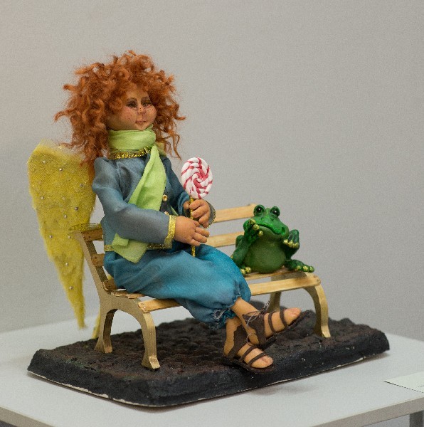 - Образ куклы родился спонтанно: рыжий мальчик-сладкоежка. И имя пришло на ум - Федор. Потом посмотрела в Википедии, и оказалось, что переводится оно как “дарованный Богом”, - рассказывает Татьяна ФИСЕНКО. - Он настоящий ангел. Когда собиралась на выставку, не могла два часа выехать из дома: сначала скамейка, на которой сидит Федор, отстегнулась, потом он сам никак не хотел в коробку укладываться. Когда ехала, поняла, что он специально меня задерживал дома, потому что по дороге видела три аварии.