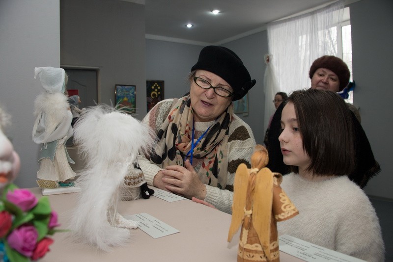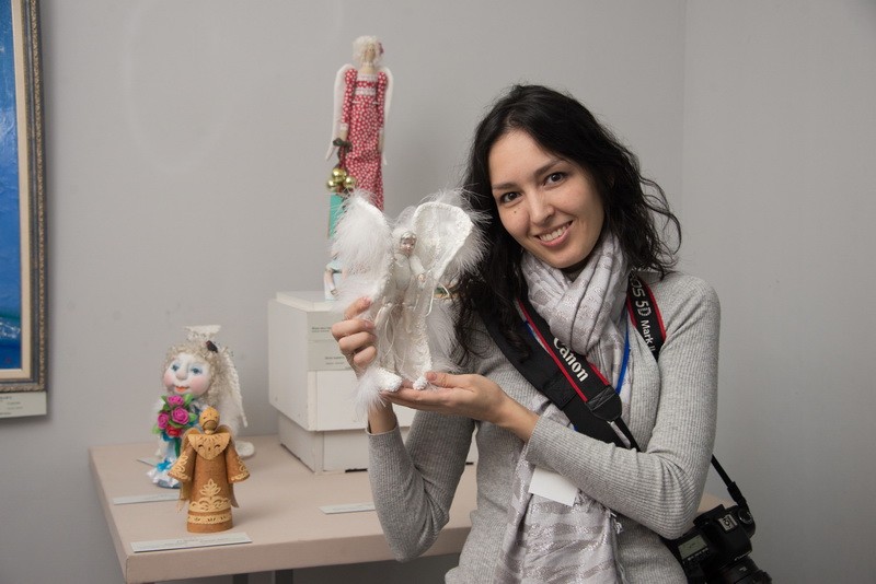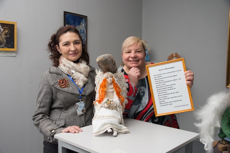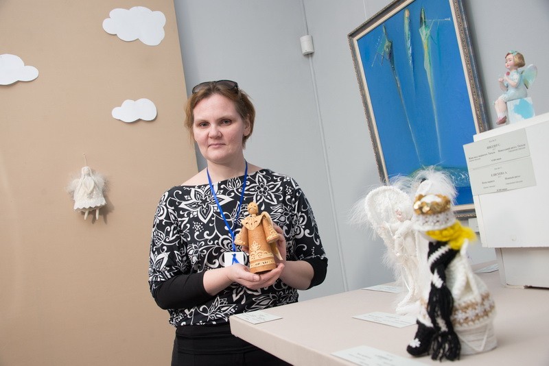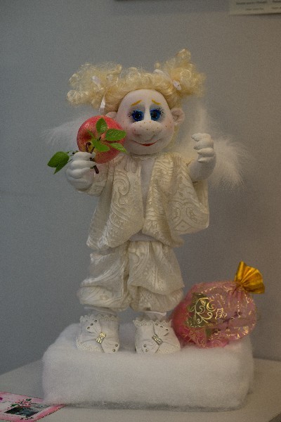 Постарались и мастера-кукольники. На выставке можно увидеть самых разных ангелов: больших и маленьких, вязаных и сделанных из бересты, фарфоровых и текстильных, из полимерной глины и запекаемого пластика. Каждая работа наполнена особой энергией тепла, любви и добра.