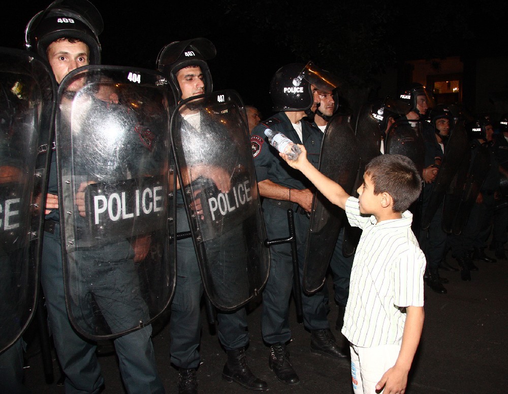 Несмотря на отсутствие у организаторов санкции мэрии Еревана о проведении массового мероприятия, полиция разрешила демонстрантам остаться на площади с условием: они не будут нарушать общественный порядок. Главным переговорщиком с протестующими выступает заместитель начальника полиции Еревана полковник Валерий ОСИПЯН.