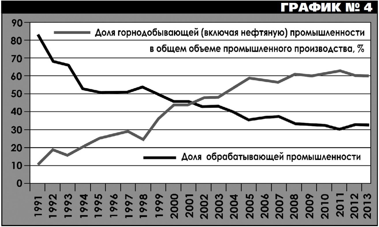 Куда уж красноречивее: все последние два десятка лет мы с вами имеем один и тот же экономический тренд - не индустриализацию, а деиндустриализацию. Единственное же, что привнесла сюда программа ФИИР, - это относительная стабилизация, всего лишь приостановление наращивания сырьевого перекоса.