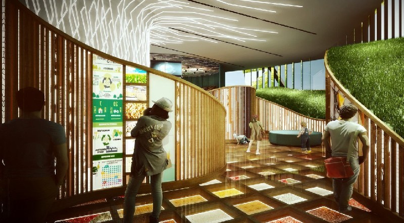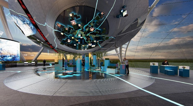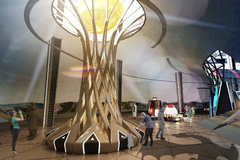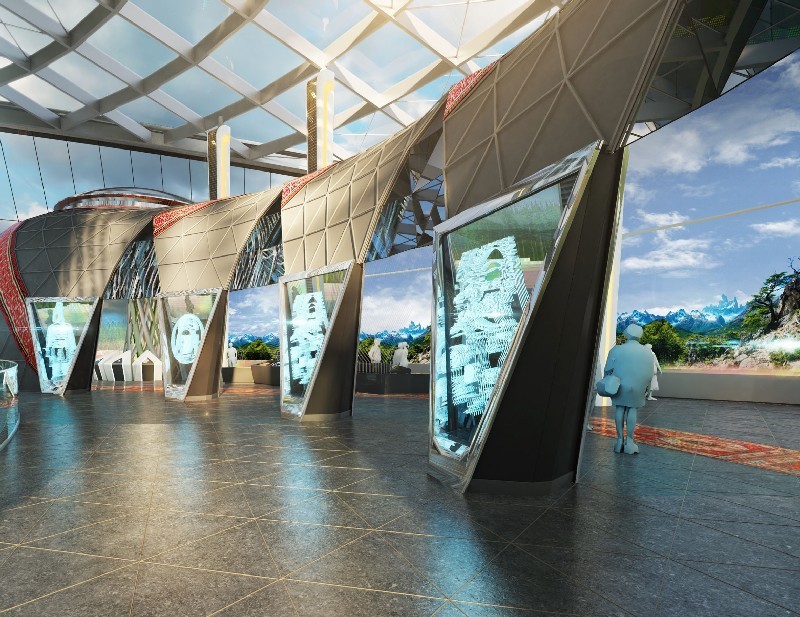 В первой части павильона планируется представить разнообразные и обширные ландшафты, богатую культуру, историю, настоящее и будущее Казахстана.