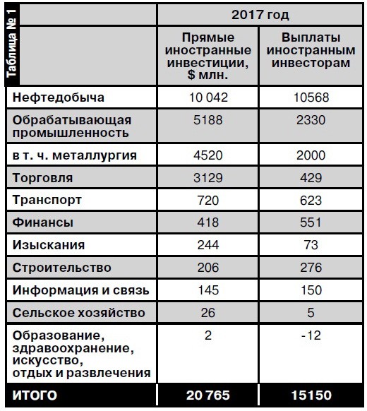 Это данные за 2017 год, и, как видим, деньги иностранных инвесторов идут подавляющей массой традиционно в нефтедобычу. Казалось бы, это не соответствует сказанному министром инвестиций и развития Женисом КАСЫМБЕКОМ на Совете иностранных инвесторов, что в 2017 году каждый четвертый доллар вкладывался уже в обрабатывающую промышленность, но министр тоже прав. С тем только уточнением, что в основном это инвестиции в металлургию, которая в нашем случае направлена не на высокие переделы и внутренний рынок, а на тот же сырьевой экспорт только не жидких, а твердых богатств наших недр.