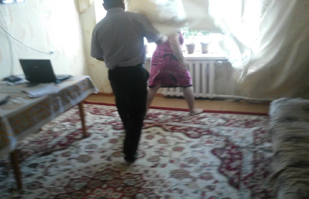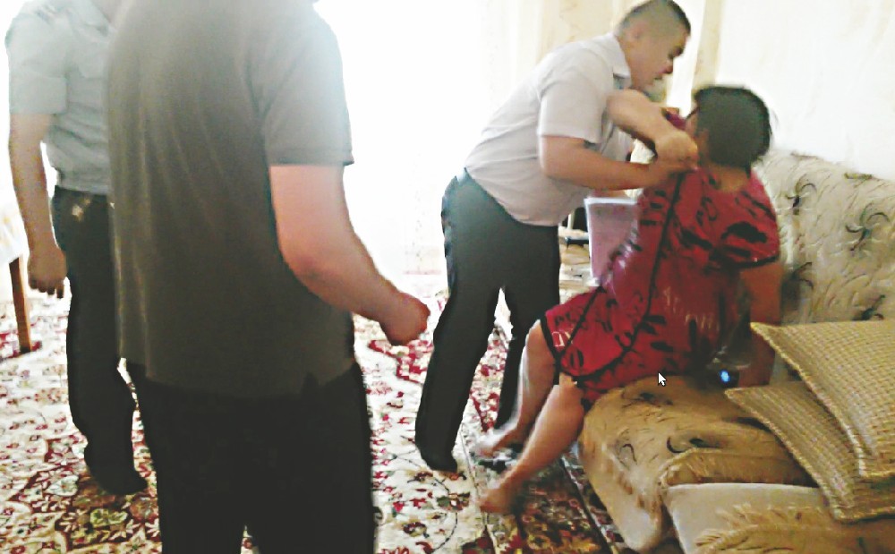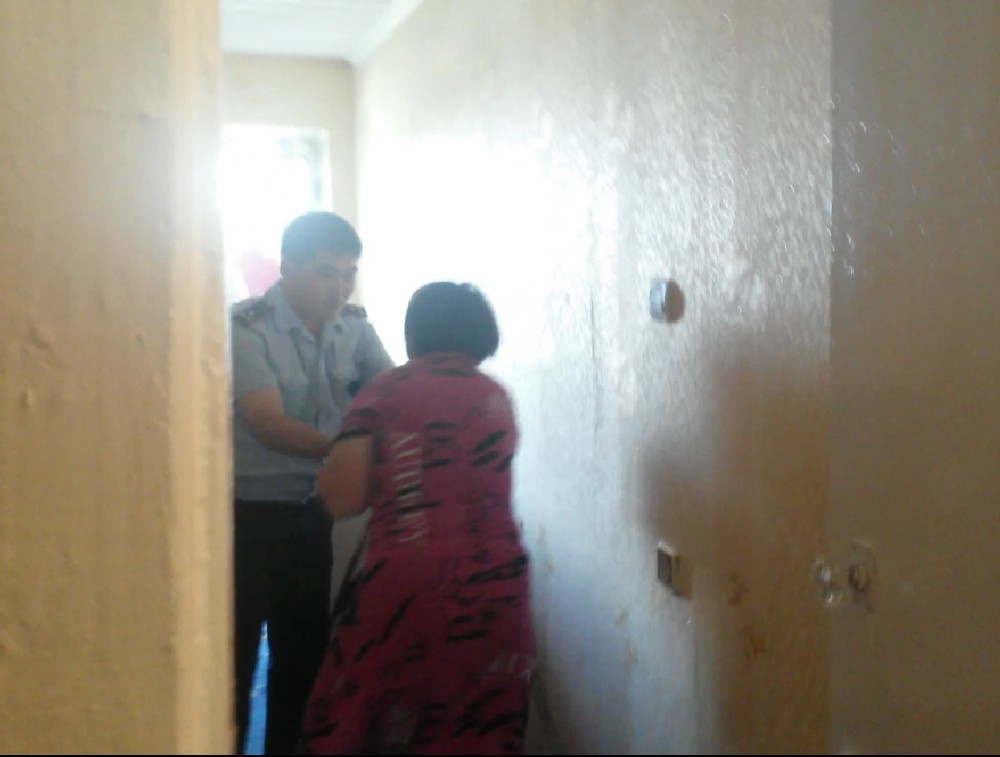 На снимках: кадры видео попытки судисполнителей выселить Кайргали и Гульнар ЕРМЕКОВЫХ из чужой квартиры.