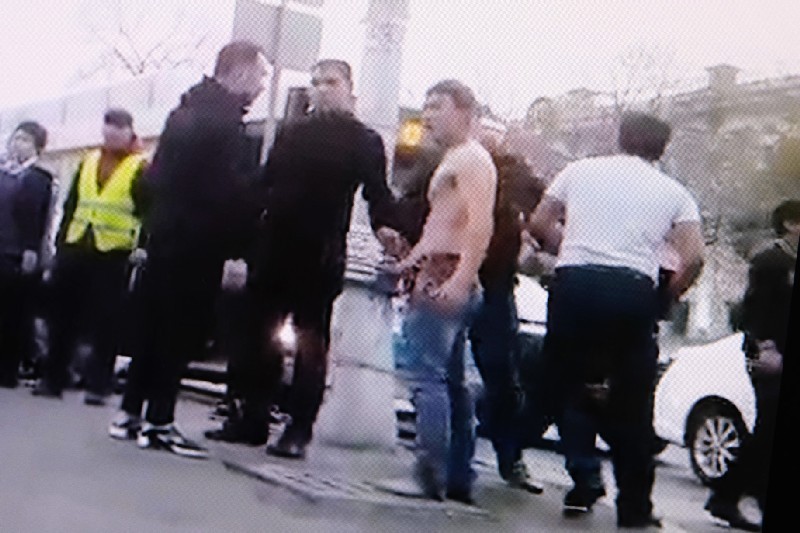 На распространенном в YouTube видео отчетливо видно, как кондуктор бегает с голым торсом, а пораженная зрелищем толпа кричит: “Да что это такое?!”, “Хватит!”, “Прекратите уже!”. Кто-то просит вызвать “скорую помощь” для пострадавших.