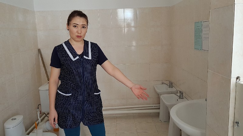 Работница талдыкорганского детсада Айым БАСЫРОВА показывает, где обнаружила рассыпанные соль и мак.