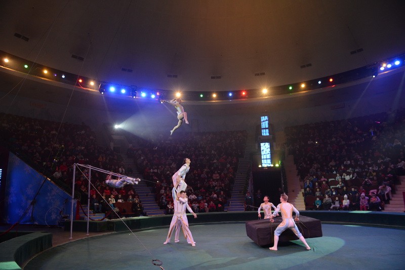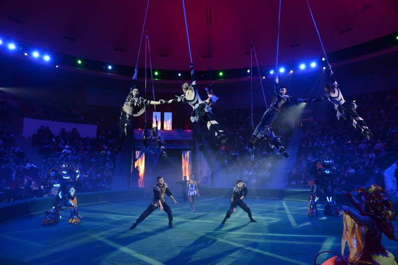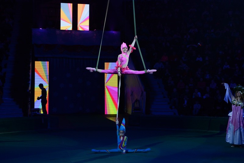 Представление завораживает с первых минут. Действие одновременно разворачивается на манеже, в воздухе и зале.
