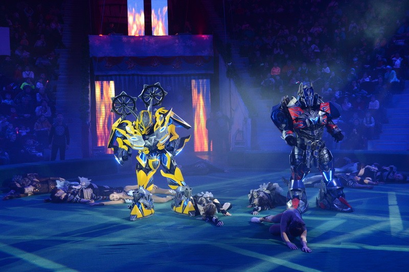 Бурными овациями наградила публика и трансформеров. Еще бы! Костюмы, надетые на артистов, весят 55 килограммов, а они не только двигались в них, но и танцевали.
