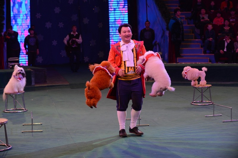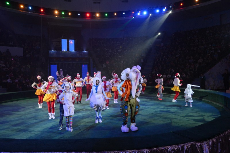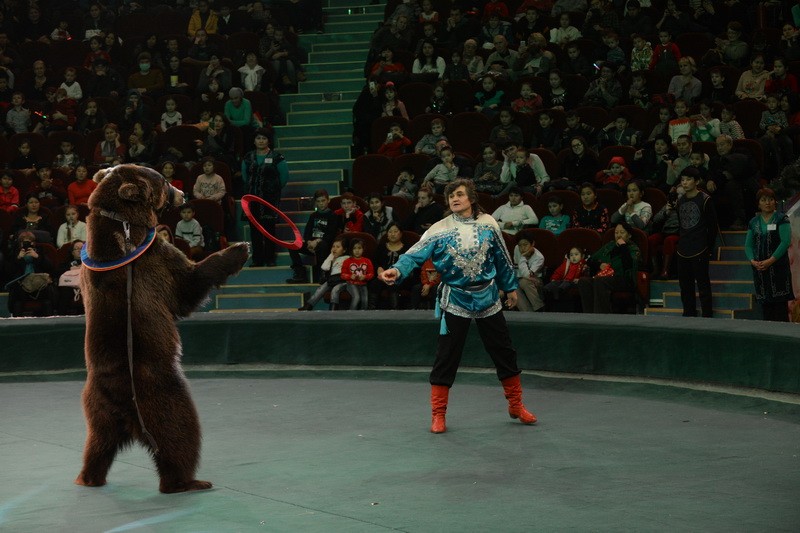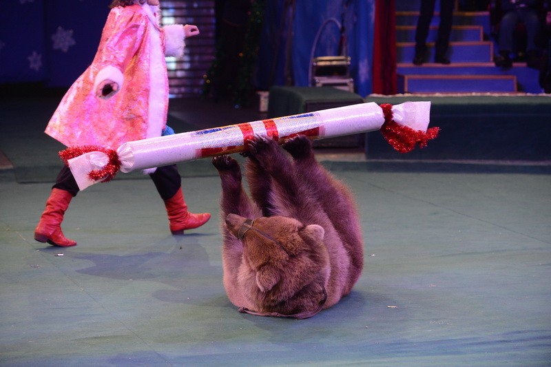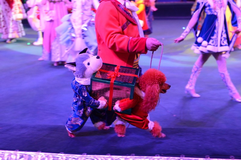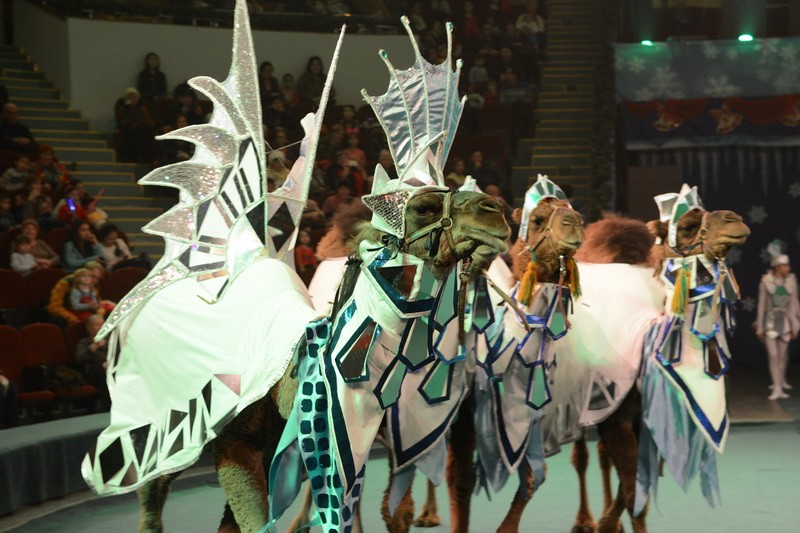 В постановке также задействованы четвероногие артисты: медведи, собаки, пони и даже верблюды.