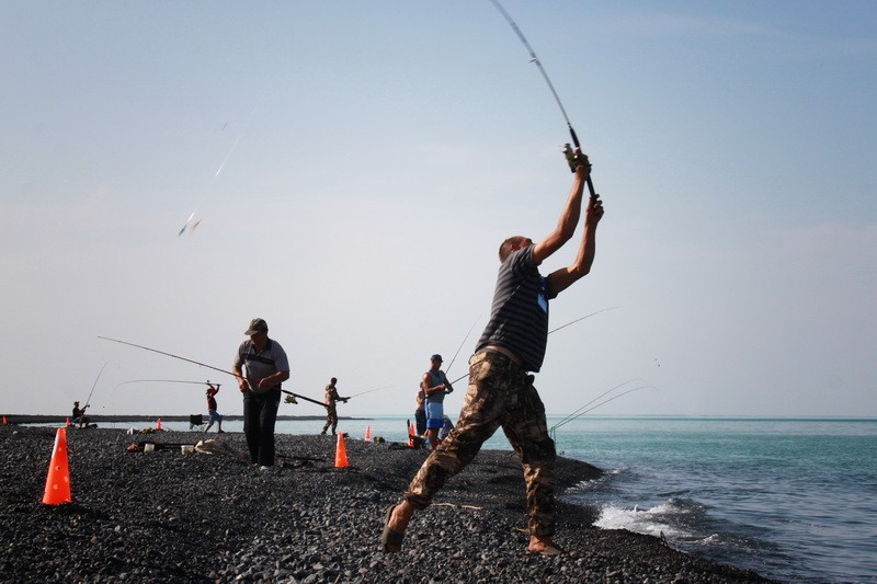 Получив конус с номером сектора, участники отправились на берег Алаколя, чтобы приготовить снасти. По условиям турнира им можно ловить на два крючка сразу, но при этом использовать только одну удочку: донную, поплавочную или спиннинг. Или на две удочки с одним крючком на каждой.