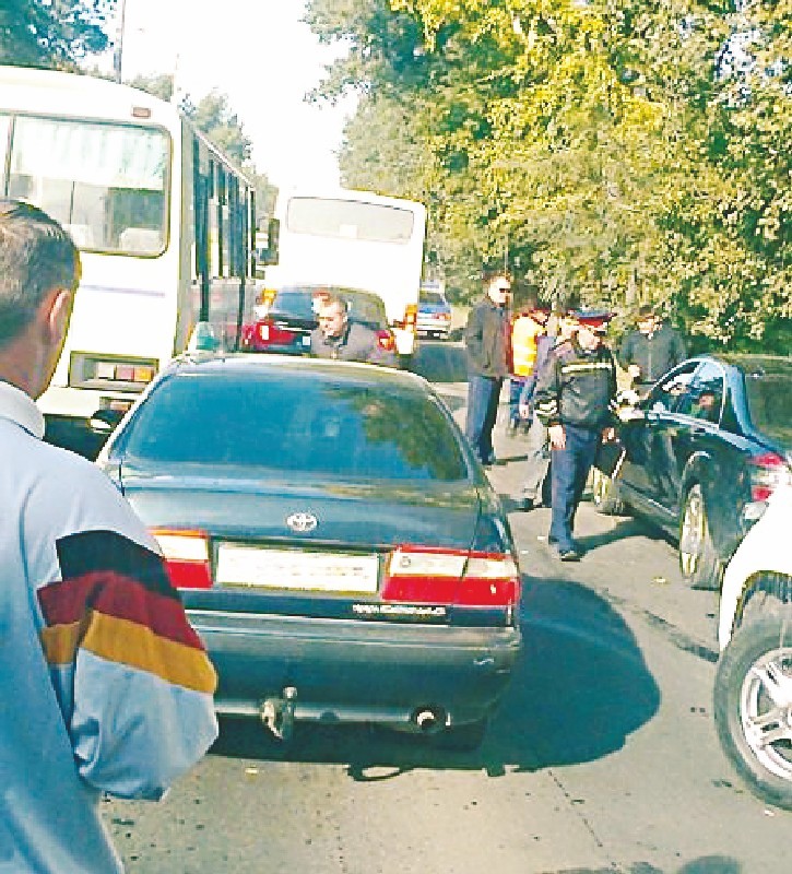 Громадная по меркам небольшого городка пробка фактически парализовала движение в центре областной “столицы”, на дороге у местного университета, ведущей к оживленному перекрестку. В заторе сотням горожан пришлось провести чуть ли не два часа. Многие из них успели заснять черный 600-й “мерс”, ставший виновником аварии, и распознать в нем… автомобиль акима города!