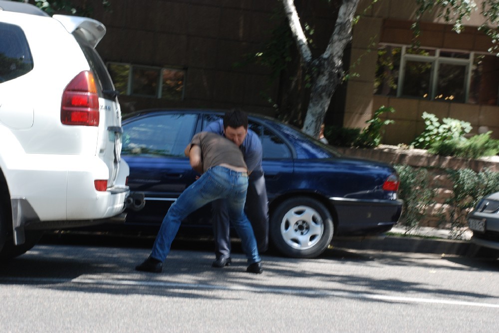 Только в этом году в Алматы и области было зарегистрировано несколько инцидентов на дорогах. В начале июля в южной столице перепалка между 19-летним мотоциклистом и водителем “субару” закончилась стрельбой. Повздорили они из-за очередности проезда перекрестка. Сначала водитель и пассажиры машины набросились на парня, а потом выстрелили в него из травматического пистолета. Тот в долгу не остался и пальнул в ответ. Незадолго до этого Интернет взорвал ролик, записанный видеорегистратором проезжающих мимо авто, на котором молодой парень избивает супружескую пару пенсионеров - сначала мужчину, а потом и его жену, пытающуюся защитить мужа. По версии полицейских, все произошло из-за того, что один из водителей подрезал другого. В конце лета опять же в Алматы сошлись врукопашную водители “тойоты ленд крузер” и “шкоды”. Последний, не поделив дорогу с внедорожником, заблокировал его, а потом вместе с друзьями, ехавшими в автомобиле, избил и водителя, и пассажиров джипа, причем не пожалев и женщин. А в Алматинской области из-за конфликта на дороге в начале года произошла массовая драка.