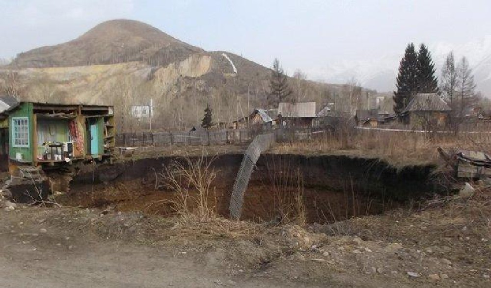 Вчера в Риддере Восточного Казахстана на глазах у десятков горожан ушел под землю частный жилой дом! Жилище с хозпостройками ухнуло в огромную воронку (на снимке).