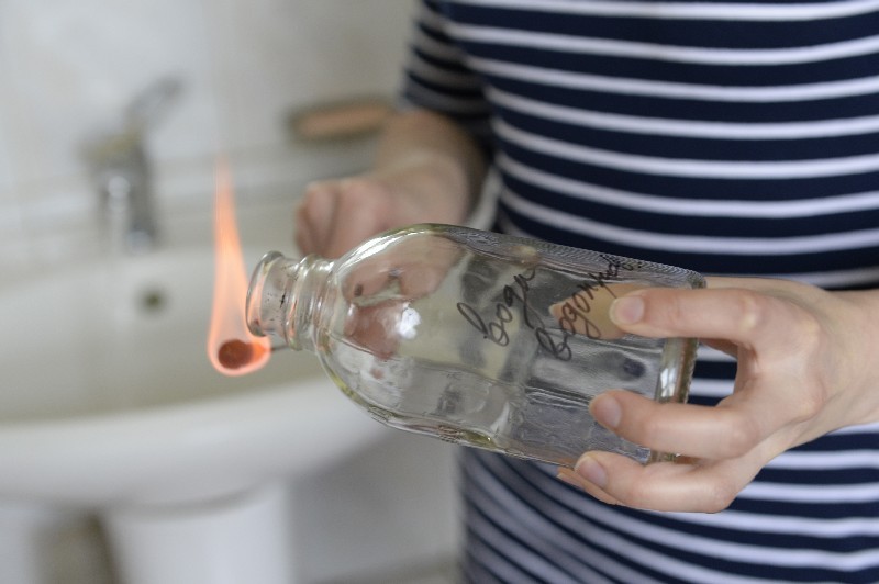 Нам выдали стерильную стеклянную посуду, и мы, приехав в офис редакции, приступили к выполнению тех самых условий сбора воды: подожгли ватный тампон на длинной проволоке, смоченный в спирте, и обожгли этим факелом кран в нашем туалете. Потом открыли холодную воду до предела и пропускали ее целых 10 минут. После этого снова подожгли факел, обработали край стеклянной бутылки и набрали 400 миллиграммов воды. Тот же эксперимент провели и с диспенсером, только аккуратно, стараясь не оплавить его огнем. Взяли в магазине несколько бутылок питьевой воды местных производителей и в течение двух часов - таково условие - доставили в лабораторию. Там ее забрали на исследование и попросили прислать официальное заявление на имя директора РГП на ПХВ “Научно-практический центр санитарно-эпидемиологической экспертизы и мониторинга” Еркина ДУРУМБЕТОВА.