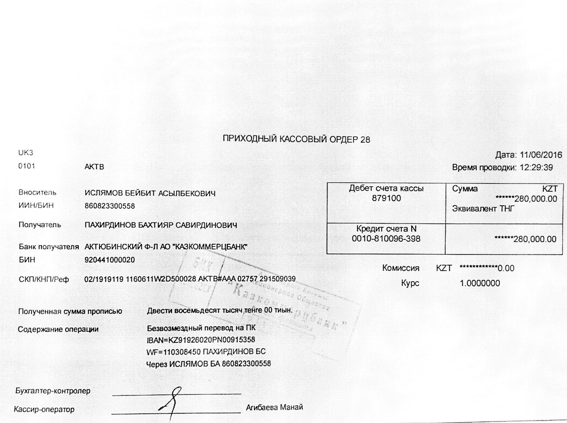 Также бывший сотрудник рассказал и о других источниках “дохода” топ-менеджеров. Например, бурением скважин занималась лишь одна компания - KB Petroleum, и вся конкурсная документация писалась исключительно под нее. Другая схема была связана с ремонтом дорогостоящего оборудования на месторождении. Как объясняет Бейбит Ислямов, поломка газоперекачивающего агрегата обошлась компании в 50 миллионов тенге, а еще 50 миллионов ушло на запчасти. Однако, как утверждает автор письма, есть вероятность, что агрегат на самом деле не ломался, а деньги просто списали через подрядчика! Рассказал работник и о том, как предприятие строит дороги к месторождению. Еще Бейбит Ислямов приложил квитанции о переводах им откатных денег на личную карточку Пахирдинова…
