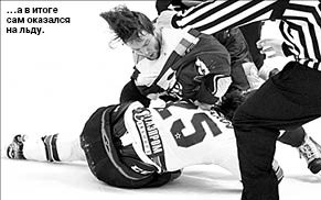 Во втором периоде слегка курьезную шайбу забросил Дастин БОЙД, по теннисному переправивший в сетку снаряд, пущенный по воздуху Эндрю ХАТЧИНСОНОМ. А вскоре после идеальной передачи Брэндона БОЧЕНСКИ счет сравнял Найджел ДОУС. Следующую шайбу хозяева забросили в большинстве: Константин ПУШКАРЕВ оказался самым расторопным на пятачке. Лидер чемпионата не на шутку разозлился. Игорь МАКАРОВ вызвал на кулачную дуэль Михаила ГРИГОРЬЕВА. И хоть наш защитник по габаритам заметно уступал питерскому бойцу, драка завершилась безоговорочной победой “барса”. Макарова унесли с поля судьи и его одноклубники. Гости ответили по-другому. Буквально через несколько секунд после окончания драки, воспользовавшись детской ошибкой Самвела МНАЦЯНА, ТОРЕСЕН пробил Виталия ЕРЕМЕЕВА. 3:3 - и пошла очень веселая игра, где по нескольку раз могли забить обе команды. Но не забили...