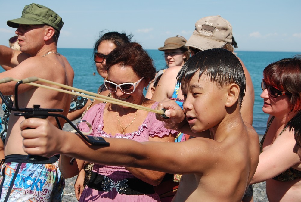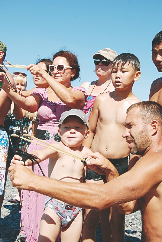 К оружию встали как взрослые, так и дети. Первыми пострелять вышли поклонники сарбакана.