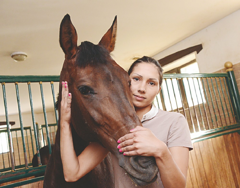 Среди участников мы заметили одну-единственную девушку. Ксения ДУБОВЦЕВА (на снимке) занимается не только конкуром, но и выездкой.