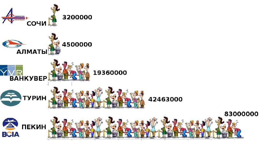 Перед тем как перейти непосредственно к сравнительному анализу, напомним, что Олимпиаду в Турине посетило около 1 млн. человек, в Ванкувере - 325 тысяч, в Сочи - более 1,4 млн. туристов. Отметим также, что у Пекина уже имеется опыт проведения Олимпийских (правда, летних) игр в 2008 году. Тогда столицу Китая посетили 400 тысяч человек.