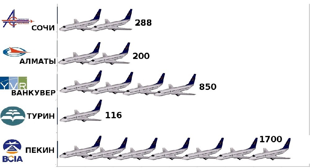 Самое главное, чтобы новый проект расширения действующего аэропорта не постигла судьба его предшественника, так как гавань с ее сегодняшним потенциалом если и справится с олимпийской нагрузкой, то с очень большим трудом. Почему? По словам экспертов, самая основная проблема заключается в том, что львиная доля зарубежных рейсов из Европы прибывает в Алматы преимущественно ночью, так как во многих странах Старого Света действует запрет на полеты в ночное время (по данным ИКАО, по состоянию на 2012 год более 250 национальных и международных аэропортов мира ввели те или иные формы эксплуатационных ограничений на полеты в ночное время). Получается, что на обслуживание европейских туристов у Алматинского аэропорта будет 6-8 часов ночного времени. В результате он в эти часы будет работать с максимальной нагрузкой - 1500 пассажиров в час - и обслуживать в результате 9-12 тысяч человек. Это больше, чем в Турине, но меньше, чем в Сочи...