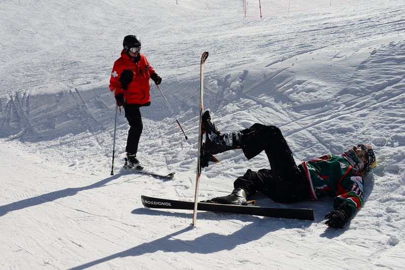 - Там лыжник упал и что-то долго не встает, - прервал наш разговор подъехавший сноубордист.