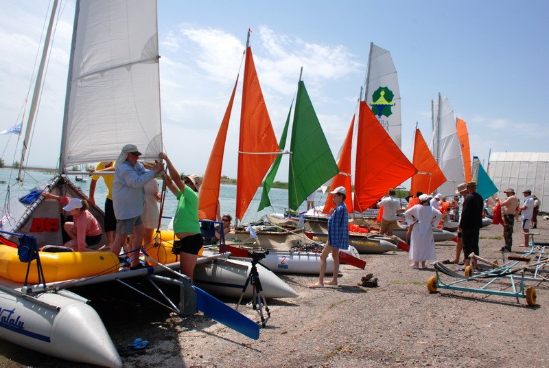 Когда мы прибыли на регату, подготовка к старту шла полным ходом. Берег городского яхт-клуба напоминал муравейник: экипажи собирали катамараны, зрители фотографировались с участниками, среди которых было немало колоритных персонажей. Самому юному, Арсению ГАЙДЕ из команды Pacifica, всего десять лет, и это его дебют на регате в качестве юнги.