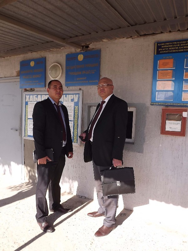 ДаулетБАЙСЕИТОВ(слева) и Сапар АМИРТАЕВ (справа) у шымкентского СИЗО.
