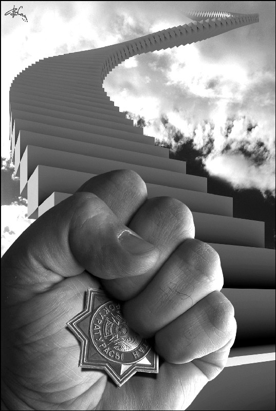 Снять прокурорские ноги с горла начальника следственного отдела смогли оказавшиеся во дворе сотрудники обоих правоохранительных ведомств. “Освободившись от захвата, - говорится дальше в отчете, - Бектемиров поднялся на ноги, вырвался и схватил палку, лежавшую возле строительных материалов. В ответ на эти действия Уксикбайев подобрал лежавший на земле возле стройматериалов металлический предмет и с ним пошел на Бектемирова. После чего последний забежал в здание прокуратуры города, в кабинет, где помимо работников прокуратуры находились следователи СО ОВД Линенко и Арынгазинов. Подбежав к Арынгазинову, который после дежурства был в форменной одежде с боевым оружием ПМ калибра 9 мм, пытался достать у него из кобуры пистолет”.