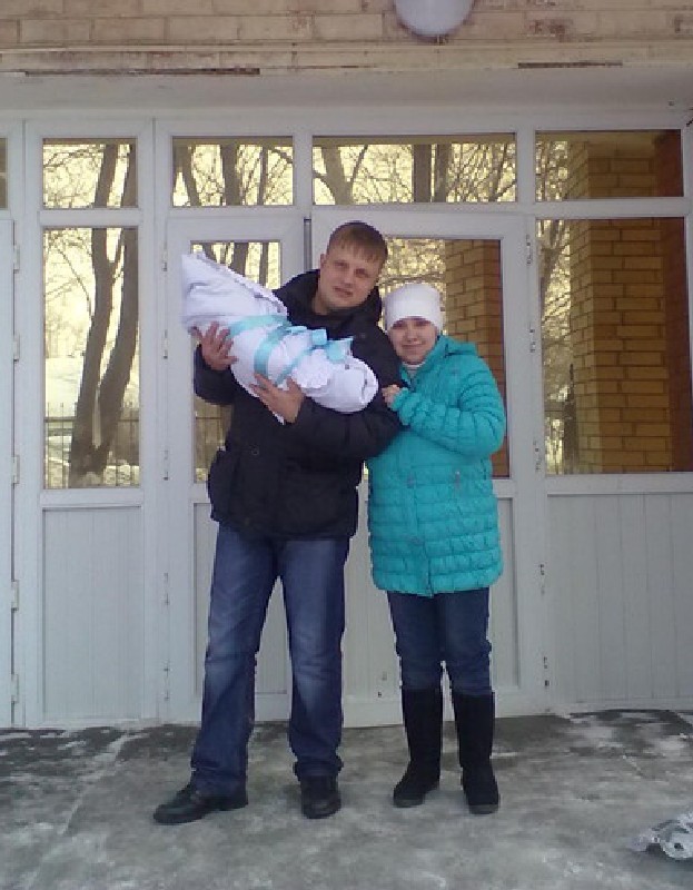 Павел РУЛЬ с супругой и новорожденным сыном у роддома.