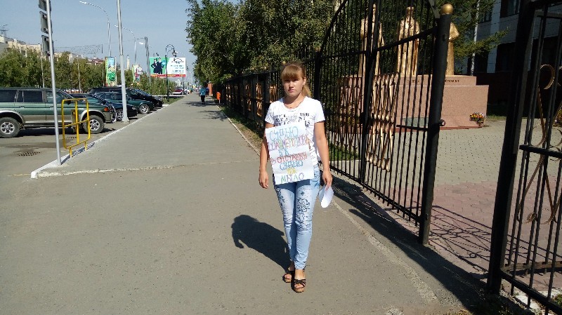 Судью - на мыло, депутата - за решетку! С таким одиночным пикетом к зданию Акмолинского облсуда вышла в понедельник жительница Сандыктауского района Наталья БУЛАНОВА (на снимке).