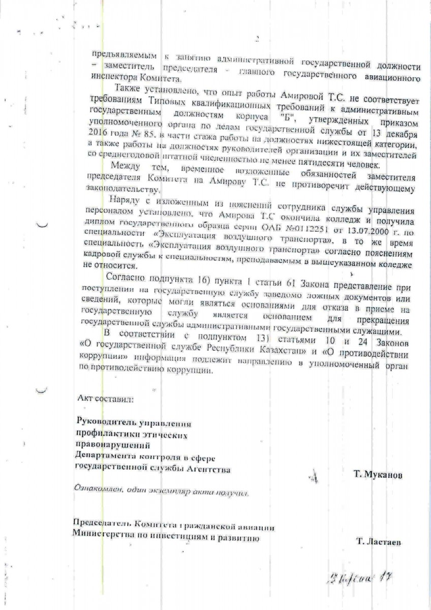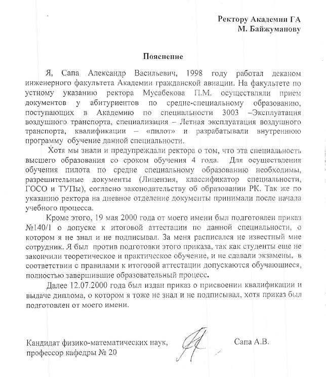 - В апреле несколько человек получили лицензии, в том числе и я, - говорит Нурсултан Даулетбаев. - Мы просто сдавали документы первыми. Но основная группа застряла. В академии не знают, с чем это связано. Тогда я, как староста группы, и еще пара человек отправились в Астану, чтобы узнать в КГА, что случилось с документами. Просились на прием к председателю комитета Талгату ЛАСТАЕВУ - он нас не принял. В итоге попали к министру по инвестициям и развитию Женису КАСЫМБЕКУ, там же был его заместитель Роман СКЛЯР, курирующий авиацию. Ну и Тоты Амирова. Говорила в основном она, причем особо не выбирая выражений. Она обвинила нас в том, что мы на самом деле не летали, а ездили в Испанию купаться в море и загорать и что она не позволит таким, как мы, садиться за штурвал самолета.