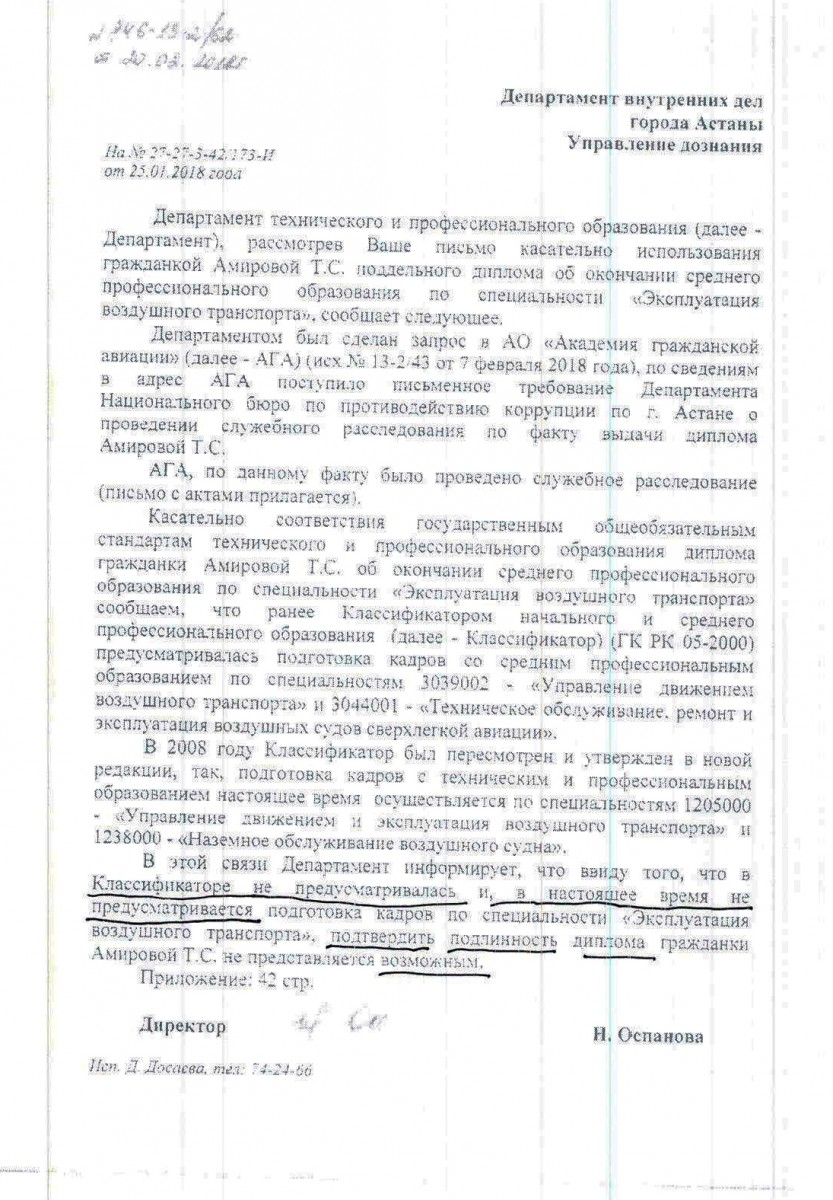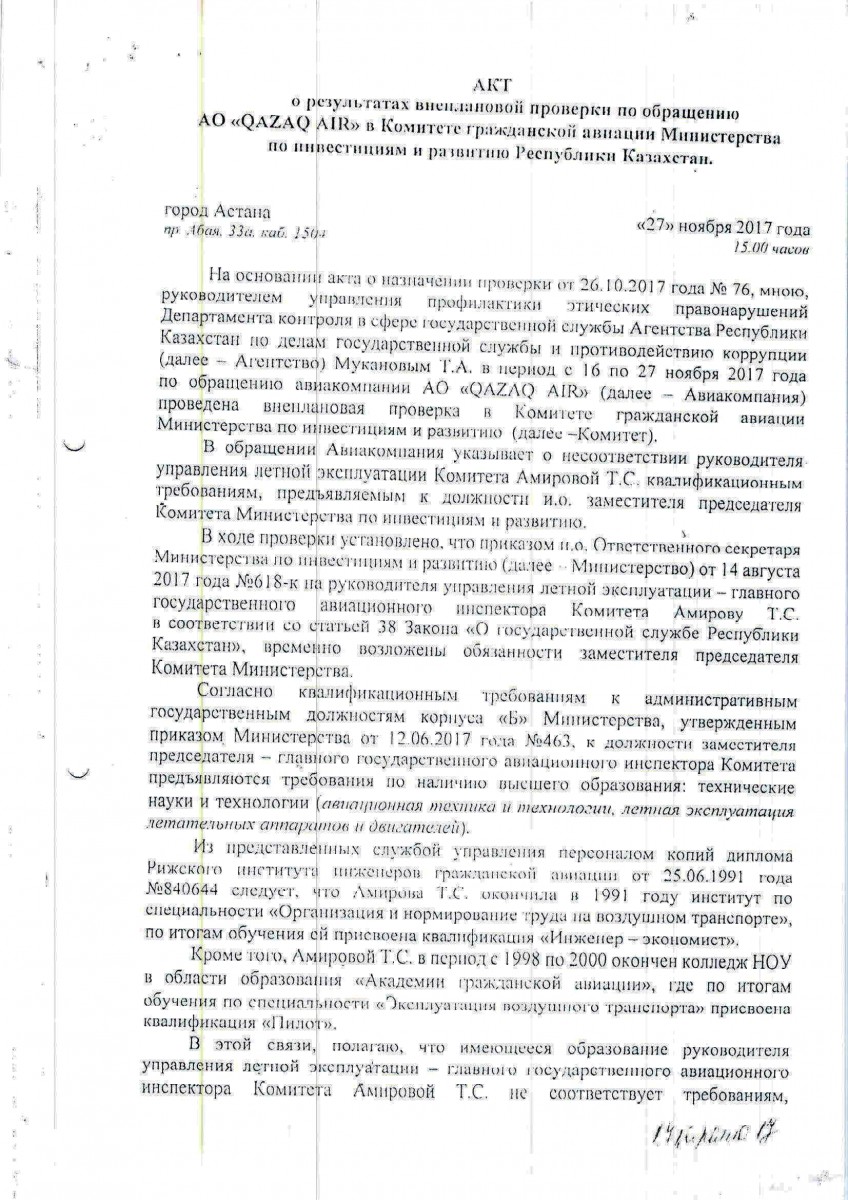 Как оказалось, у комитета гражданской авиации возникли вопросы к учебному центру в Болгарии, где проходили практику казахстанцы.