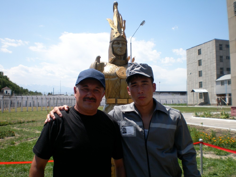Необычный подарок к Дню Астаны приготовил алматинский скульптор Серик СЕИТОВ (на снимке - слева), ныне отбывающий наказание в следственном изоляторе № 18 департамента УИС по Алматы и Алматинской области. В одиночку он отлил двухметровый монумент Золотого человека, и теперь копия исторического наследия сакских времен украсила плац тюрьмы на 70-м разъезде.