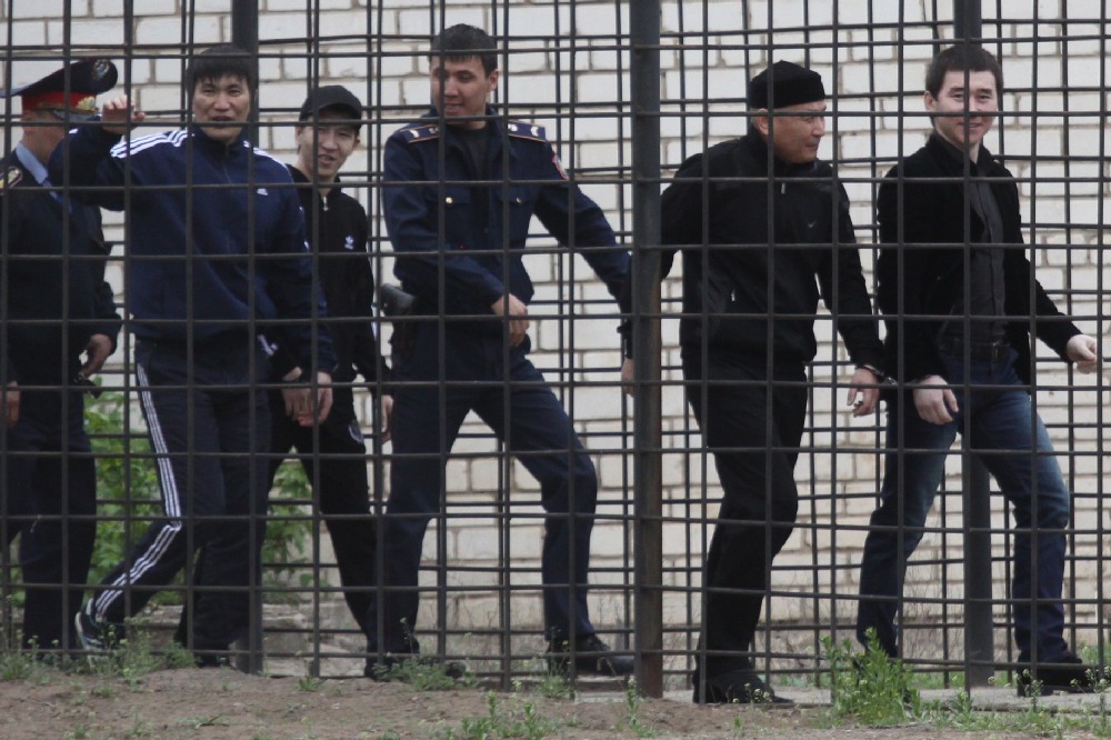 На снимке - обвиняемые (слева направо): Асхат ТАХАМБЕТОВ, Манарбек АКБУЛАТОВ, Мурсалим СУЛТАНГЕРЕЕВ, Алмаз БАТЫРХАИРОВ.