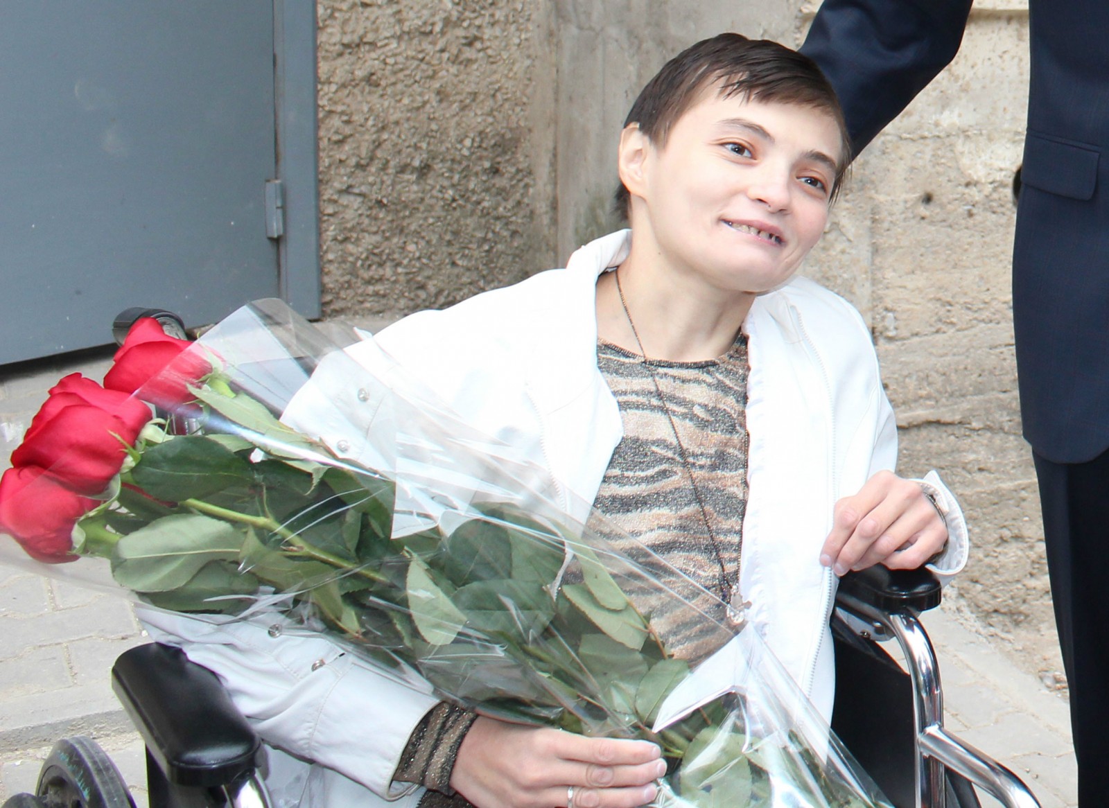 Конец затянувшейся войне между Татьяной БЕСШАПОШНИКОВОЙ (на снимке) и ее соседями положил шымкентский бизнесмен, депутат гормаслихата Ерлан НУРМАХАНОВ. Он купил и установил для инвалида-колясочницы складной пандус в подъезде ее дома.