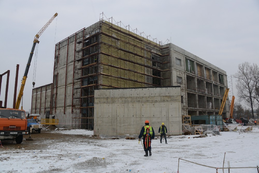 аконец следуем на стройку. Генподрядчик - американская компания AECOM, строители - из многих стран. Западный порядок чувствует во всем: перед входом на объект посетителям выдают защитную одежду и обувь, проводят инструктаж. Далее - экскурсия. Нам рассказывают, где будут располагаться офисные помещения, где лаборатории, где системы обеспечения нормальной работы объекта: резервные электрогенераторы, вытяжки и т. д. В одном из помещений будет смонтирован агрегат по созданию отрицательного давления. При открытии двери входящий туда будет буквально всасываться, чтобы ни один грамм воздуха не проник из лаборатории наружу.
