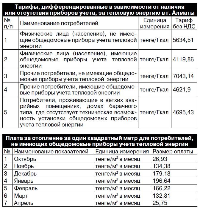 - Если установлен общедомовой прибор учета тепловой энергии, тариф за квадратный метр будет составлять 71 тенге, а если нет общедомового прибора учета, то тариф будет 96,9 за квадратный метр, - сказала руководитель отдела жилищной инспекции Темиртау Ирина ВУНДЕР, на которую сослался в своем репортаже “31 канал”.