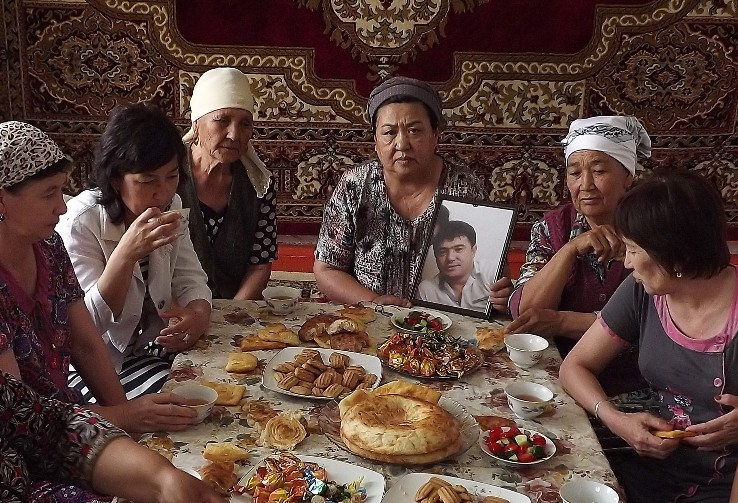 Клара УСЕНОВА с последней фотографией погибшего сына Багдата на поминальном обеде.