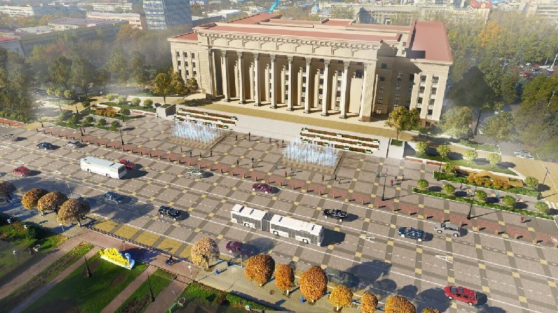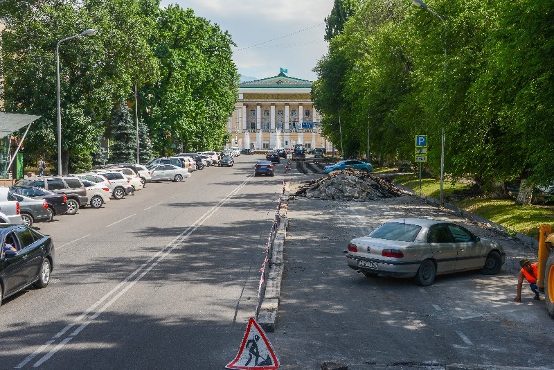 Сейчас на площади действуют шесть полос для движения транспорта - их количество сократят до четырех. Парковка и на самой площади, и вокруг университета, расположенного здесь же, уже запрещена. Вскоре здесь со стороны проспекта Абылай хана и улицы Панфилова появятся два фонтана. Сейчас вокруг здания университета растут деревья, эти аллеи продолжат и выведут их на ту часть площади, которая освободится от машин, то есть на месте нынешнего асфальта вырастут зеленые насаждения, причем, как обещают власти, не молодые саженцы, а взрослые экземпляры.